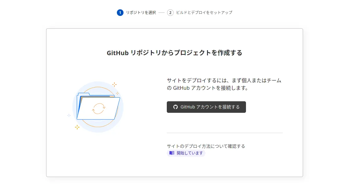 GitHubとの連携を促されるので、言われるがままに連携します。