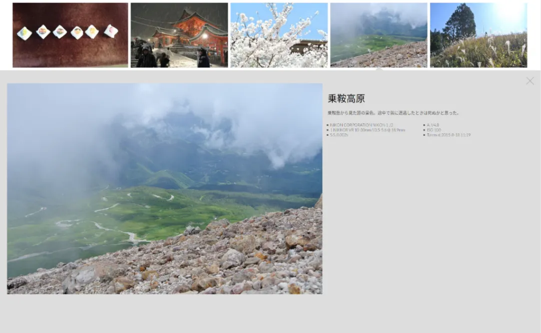subtitle = "自分で撮って「きれいだな」と思った写真を置いておく場所。アルバム。静的サイトジェネレーターの練習場所。あとなにか。"