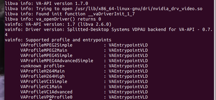 ここまで聞くとブラウザでもVP9を再生支援できそうなのですが、vdpau-va-driverがVP9に非対応。