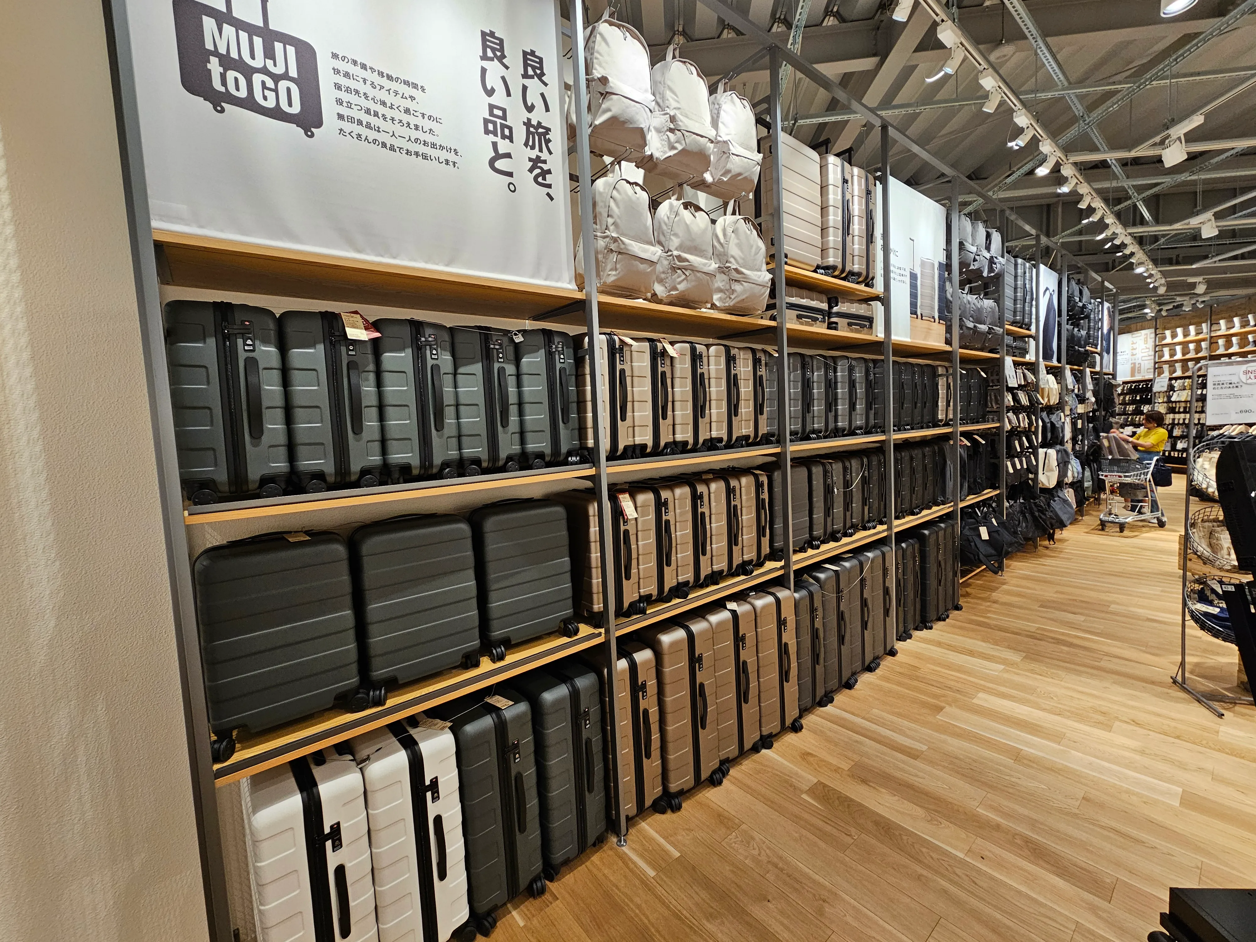その種類もさることながら、量も規格外です。スーツケースをこんなに並べるスペースが、他の無印にあるでしょうか。