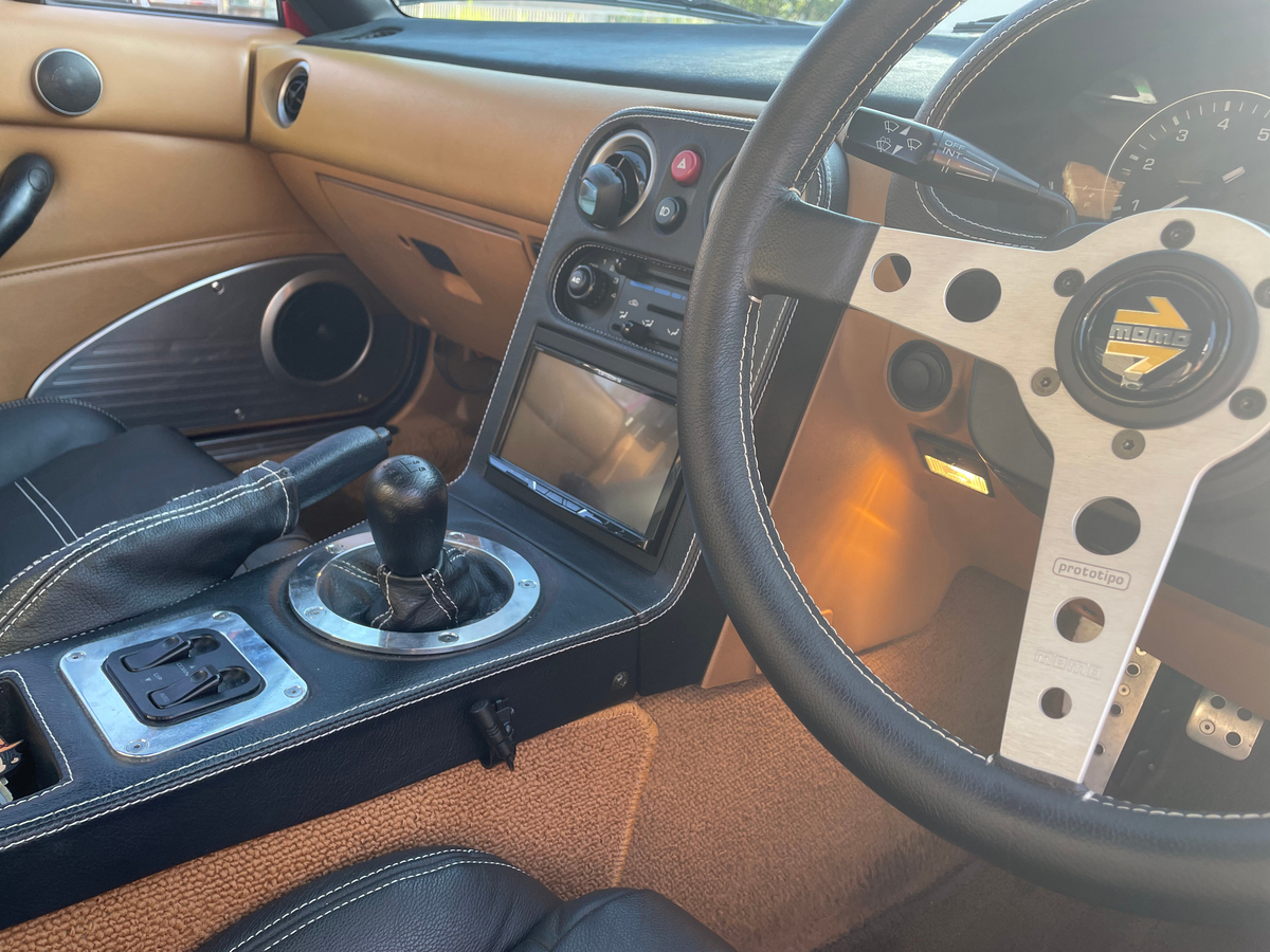購入時から白ステッチの革でシートが張り替えられていたので、その他の内装も白ステッチ革で統一したいな、と思っていました。