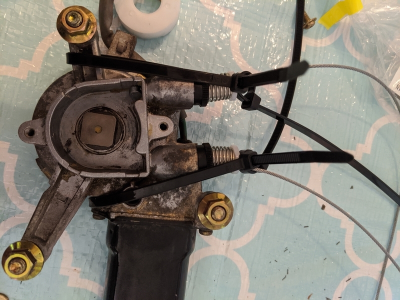 今回はレギュレーターやモーターなどは再利用、ワイヤーだけの交換を行うのでお安くできました。毎年メンテするところでもないので樹脂類は交換。