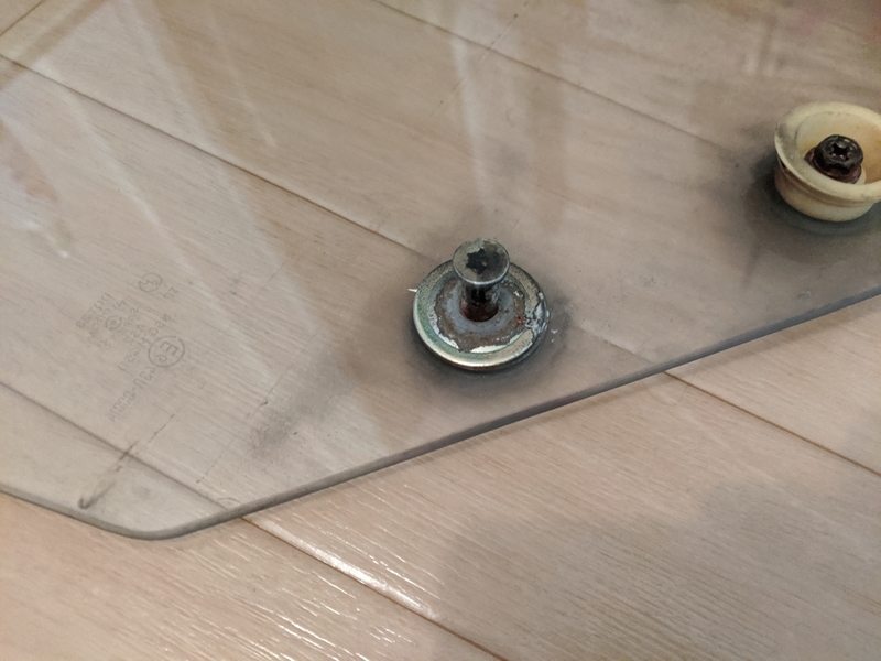 せっかくなので窓の樹脂類も交換。ここには樹脂のパーツがあるはずなのですが、経年劣化で完全に消滅していました。