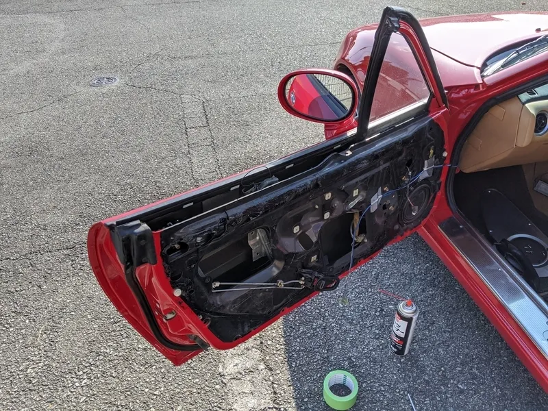 内装を外したらビニールのスクリーンが出てくるので、外していきます。ブチルゴムがどうしても残ってしまいますが気にしない。気になる場合はブチルクリーナーなどを使うといいと思います。
