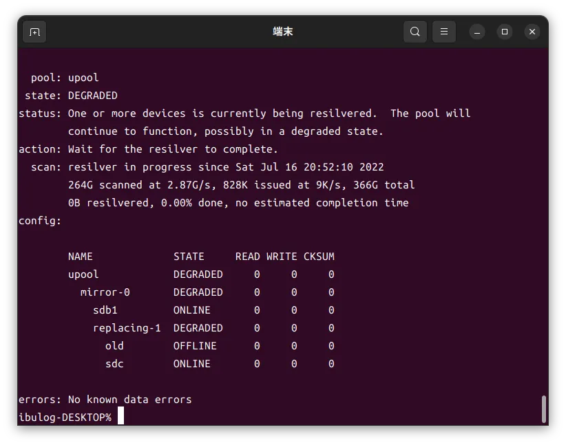 sudo zpool replace upool sdc1 /dev/sdc sudo zpool replace upool sdc1 /dev/sdc