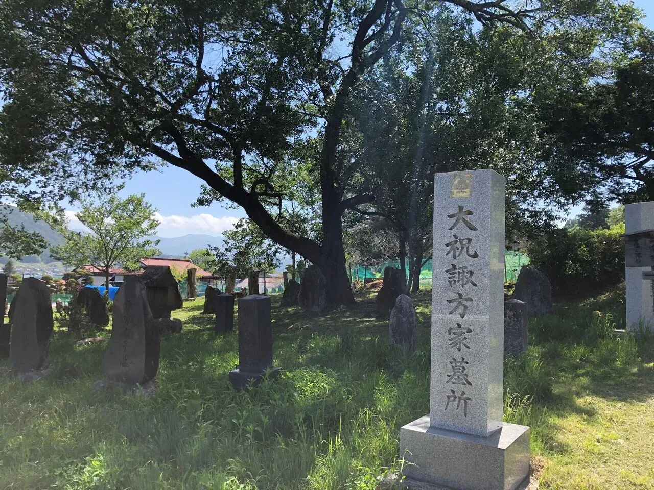 先ほどの神長官守矢資料館から諏訪湖を背に少し登ったところに、諏方氏のお墓があります。